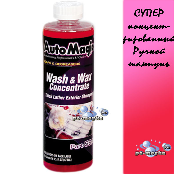 Концентрированный ручной автошампунь от Automagic хорош хотя бы, тем что его пропорции разведения удовлетворят потребности крупных автомоек и больших гаражей. Ведь не каждый шампунь, помимо своей реальной эффективности по борьбе с грязью может оставлять на кузове автомобиля блеск (именно № 56 содержит компоненты восковых составов). Так для объёма 10-ти литрового ведра воды потребуется добавить автошампуня №56 AutoMagic всего лишь 30 грамм (сами представьте на сколько он концентрирован). Справиться с грязью практически на всех частях автомобиля – диски, резина, стекло, хром, винил и т.д.