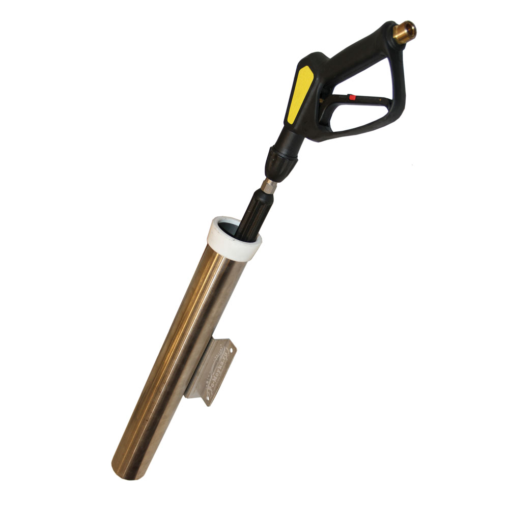 Нержавеющий держатель пистолета для автомоек с настенным креплением.