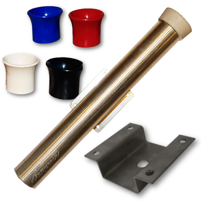 Простой и надёжный держатель, как колчан, под пистолет любого давления предлагаемый Vikos или Gidra имеет настенное крепление. С использованием обычных 4-ех винтов или саморезов Вы можете смонтировать в боксе или гараже необходимый держатель пистолета. Исполнение такого колчана (или по новому русскому – держателя) выполнено из нержавеющей стали, что даёт гарантию на продолжительность применения после монтажа в боксе. При обозначении места в моечной зоне под каждый используемый при мойке аксессуар даёт порядок, превращает площадь в систематизированную налаженную работу и передаёт уют. Держатель настенного типа из нержавейки реально способен убрать затраты на восстановление пистолетов и курков от моечной или пеногенерирующей техники. Как минимум мы можем предложить 4-е вида цвета колпачка на конце колчана - синий, красный, белый, черный. Диаметр самой трубы составляет 63 мм.