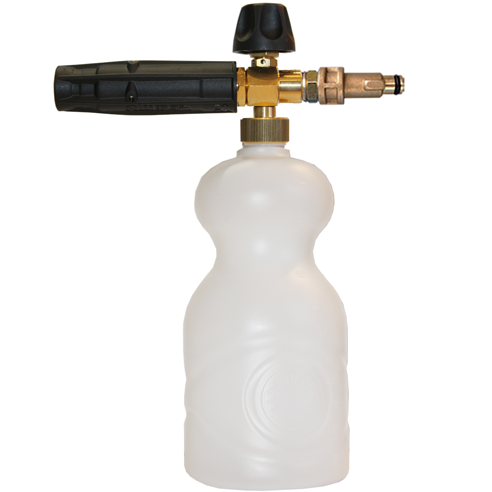 Какие плюсы у использования для работы с бытовыми минимойками пенной насадки IPC: А. Пена при насыщении химическим составом получается густой и великолепно отчищает любые загрязнения. Б. Уровень распыла можно отрегулировать до нужного. В. Также имеется регулировка для насыщенности пены – от водянистой до густого состояния, одновременно регулируется и расход бесконтактной химии. Г. При использовании на аппарате АйПиСи насадки эффективность ее будет такой же, как и на автомойках. Д. Предлагаемые нами насадки производятся в Италии. Е. Вместе с устройством в одном комплекте идет пенообразующая сеточка-таблетка. Ж. Объем баллончика для химсредств – 1 литр. З. Пенообразующая часть насадки имеет основание, выполненное из нержавеющей стали и латуни