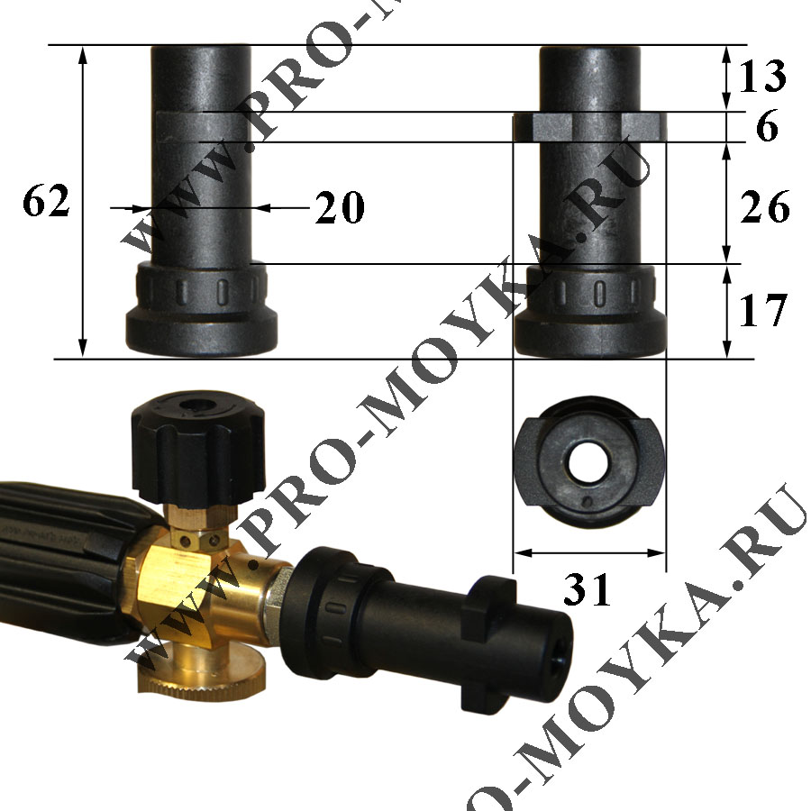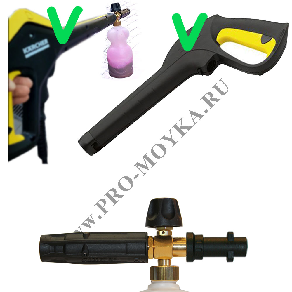 Наверное, Вас после покупки и испытания самой минимойки Керхер, с тест-пробой заливки в её бачок бесконтактного средства и последующего нулевого эффекта – обидное зрелище. Не первый, кто звонит и рассказывает нам, что мыльная вода, пены нет, все бесконтактные средства перепробовал. А стоит лишь купить простой аксессуар пенная насадка для Керхер с пластиковым хвостиком производства Италии LS3 (только бытовая серия K2 … K5 …. K7), абсолютной любой модификации (благо хоть они разъём этот не меняют уже лет 20-ть). Немного про работу самой насадки на Karcher: шапка пенная – гуд, ширина струй имеет регулировку, сеточка встроена, система пенообразования из латуни.