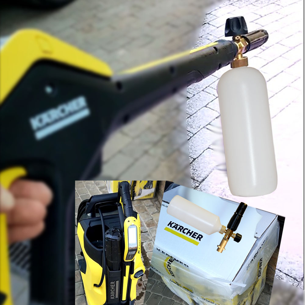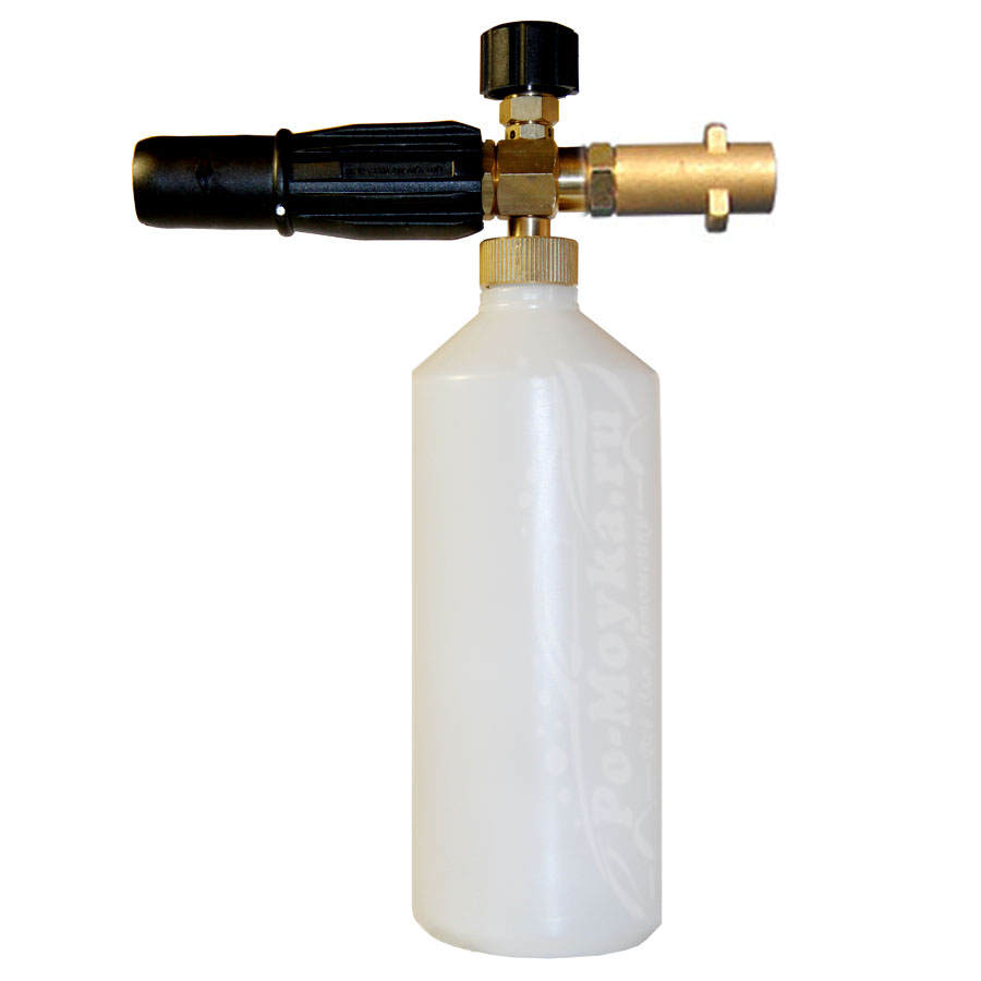 Пенная насадка для Керхер с латунным хвостиком под серию К (любого из классов от 2-го до седьмого) на сегодня не становится роскошью, но и за качеством надо побегать. Часть покупателей откровенно жалуются на продавцов из этой не мало известной организации – впаривают, говорят что будет пена, а вместо этого эмульсия. А вот нормальный пенник у них стоит в 2-3 раза дороже рыночной цены. Вот так и начинаешь думать, а зачем же я купил именно Karcher. Ну ладно, отошли от темы товара – пенная насадка Karcher под минимойку, да производитель может и не внушать доверия, но качество на личном опыте и части клиентов – классное. Также, как и LS-3 создает не менее пышную шапку (но подбор правда химии от этого тоже зависит) и имеет те же регулировочные настройки по густоте и ширине струи. Да, в комплекте сеточка и сама бутылка идёт, не стоит нас об этом переспрашивать. На самом деле от нас мы желаем, чтобы Вы не мучились при мойке кузова своего авто, а получали моральное удовлетворение. В итоге сами подумайте какая больше пенная насадка под мойку Керхер Вам подойдет: от самого Karcher-поставщика или данная насадка ?