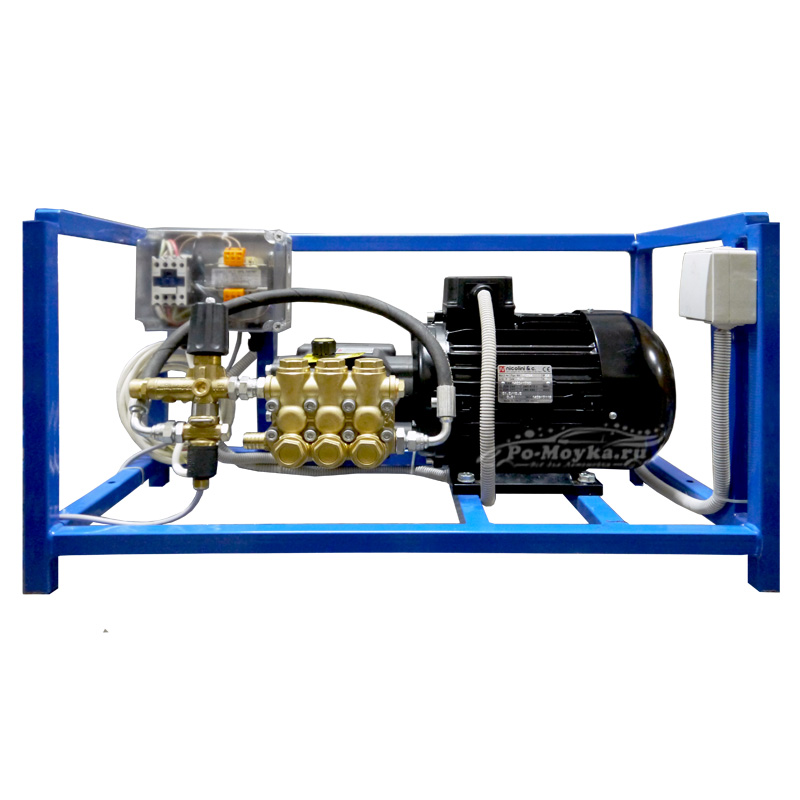 Что позволяет такой аппарат GIDRA F1 15/200 TS устанавливать на автомойку с хорошей проходимостью? Это изначально существующего в сборе на раме насоса и помпы, которые дополнены электрикой понижающей мощности (на кнопке у Вас 24 В) и жёстким соединением вал в вал (обозначение F).